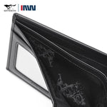 Portefeuille compact pour homme fabriqué en cuir véritable, conçu pour transporter cartes et billets au quotidien. Format adapté pour se glisser dans une poche sans encombrement.